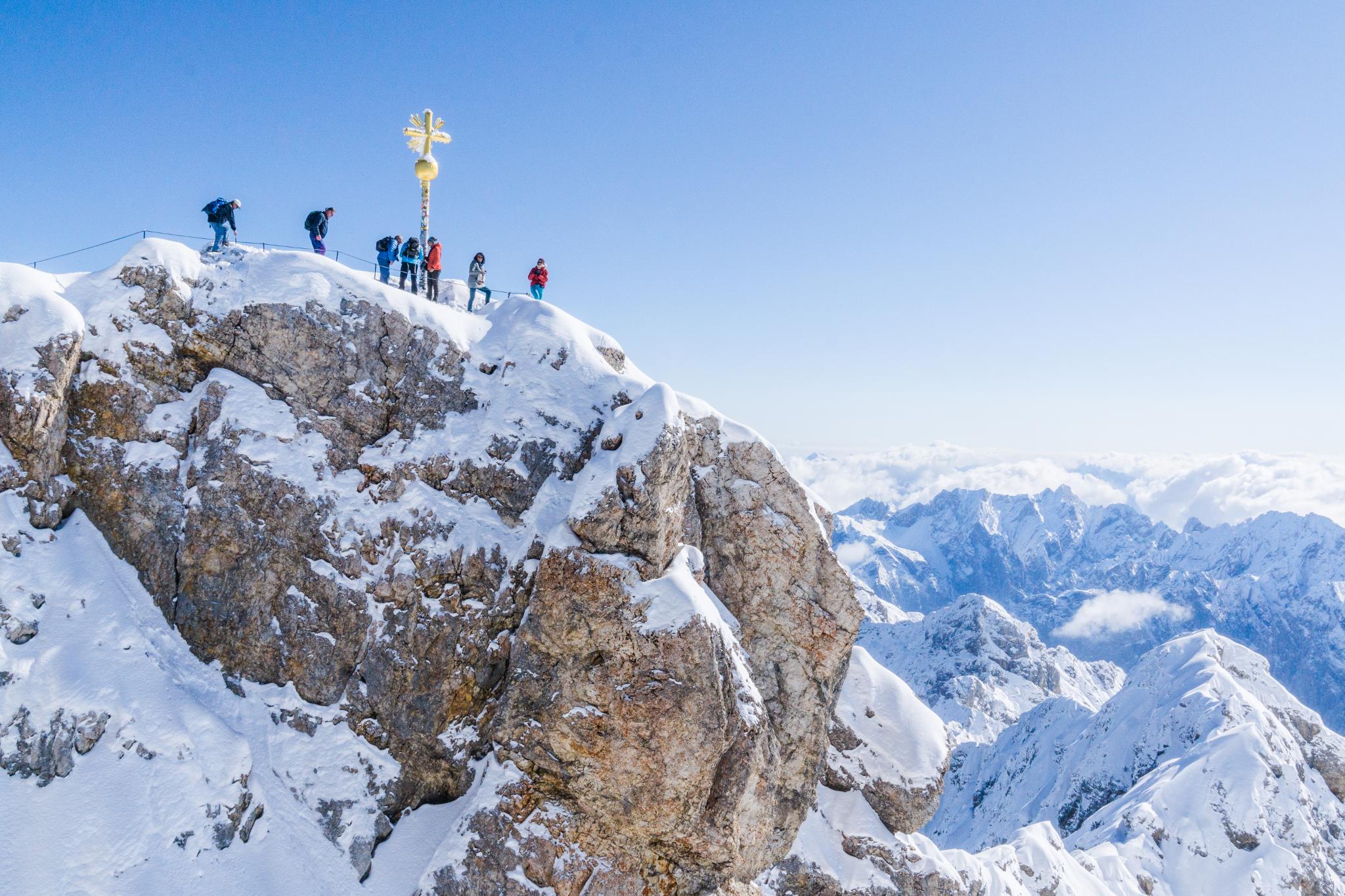 德國最高峰,海拔2962米,登上峰頂可遠眺阿爾卑斯山系壯闊綿延的山巒景緻,還有雲海和雪線。同時,由於楚格峰在德奧邊境上,山頂上遊客可輕易地越過國境,進入奧地利。觀景臺上盡覽德、奧、瑞、意四國的阿爾卑斯山區風景;而郵政編碼為82475的德國最高的郵局,就在楚格峰上。