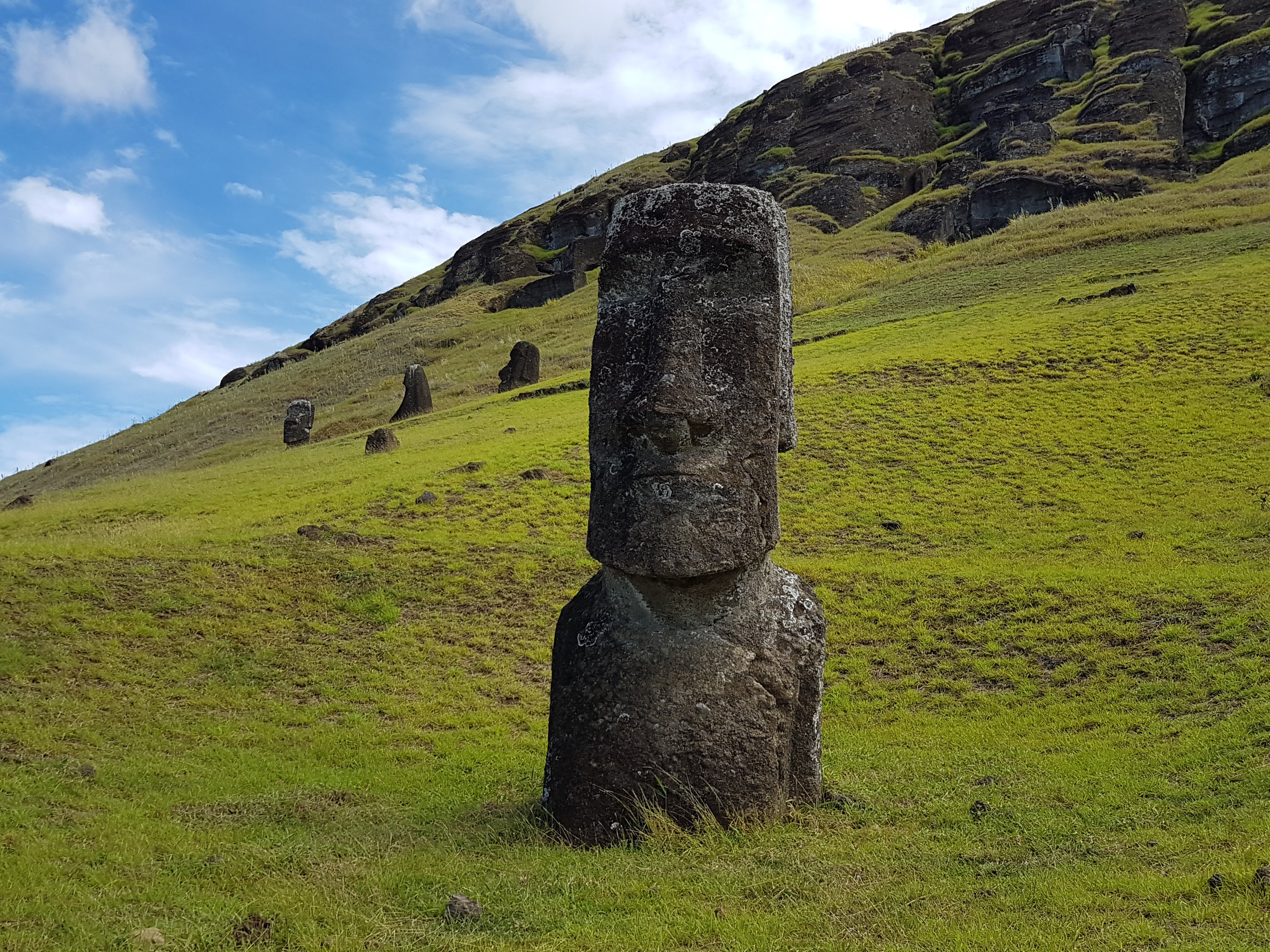 島上超過600尊摩艾像的採石場和製作工場,多尊全身或半身未完成的石像遍佈景點。在此可了解到島民如何從山石裡雕鑿出摩艾像。