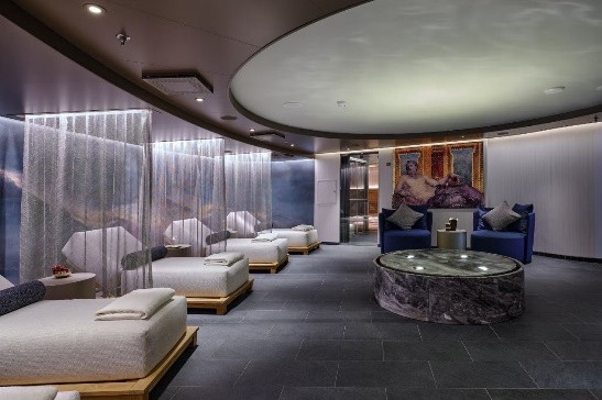 8間餐廳,咖啡廳,全景休息室,賭場、美容中心,水療中心,健身中心,游泳池,日光浴台,圖書館,精品店,醫療中心。於船上享受一系列豪華設施,從容惬意地沐浴於旅程中。