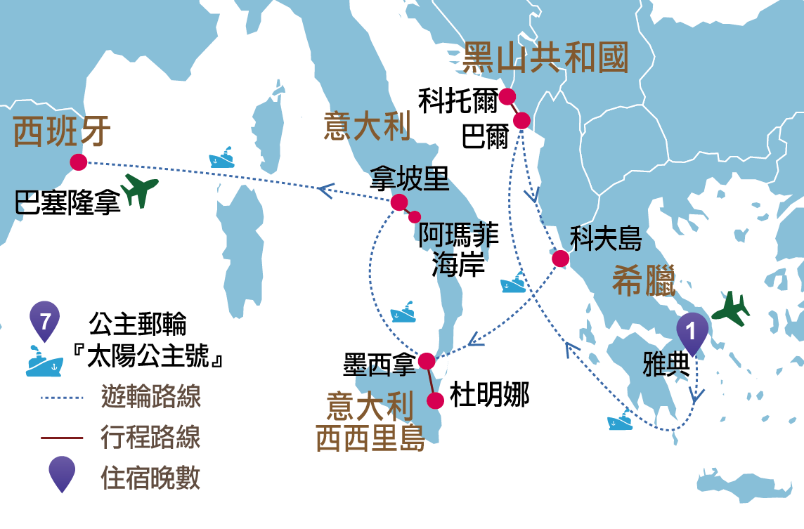 意大利:西西里島(墨西拿、杜明娜)、拿坡里、阿瑪菲海岸、波西塔諾