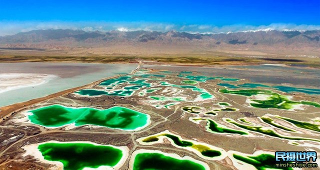 翡翠湖: 位於青海省海西州茫崖市花土溝鎮西南側。南依崑崙山,北靠阿爾金山,美麗的鹽湖已成打卡的熱門景點。