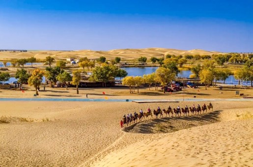 鳴沙山月牙泉: 月牙泉被鳴沙山環抱,因水面酷似一彎新月而得名。爬上鳴沙山,能欣賞大漠風光,感受西北大漠的蒼涼與廣闊。