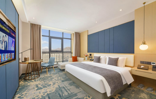 建築呈現漢唐風格,是絲綢之路(敦煌)國際文化博覽會接待各國元首及代表的酒店,是甘肅最大的園林式酒店。綠化率達85%。