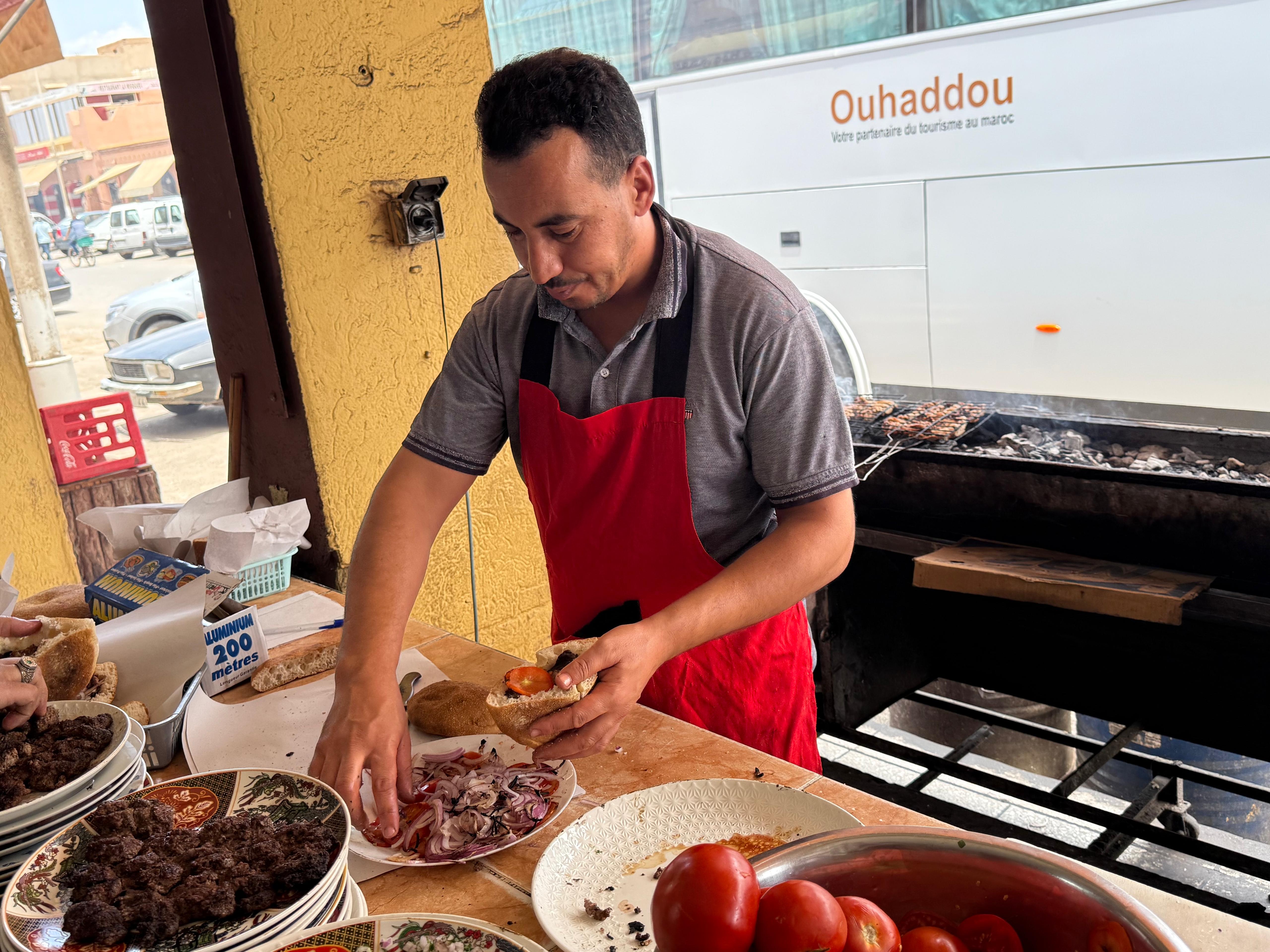 烤肉作為街頭小食代表之一,魅力源自炭火焦香將香料與肉汁的精華完美交融。在摩洛哥更流行一種升級食法,將烤好的肉鋪在掰開的麵包製成三文治,口感層次豐富,令人食指大動。尊賞假期帶您到隱世街頭小店一嚐地道風味。
