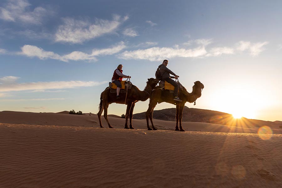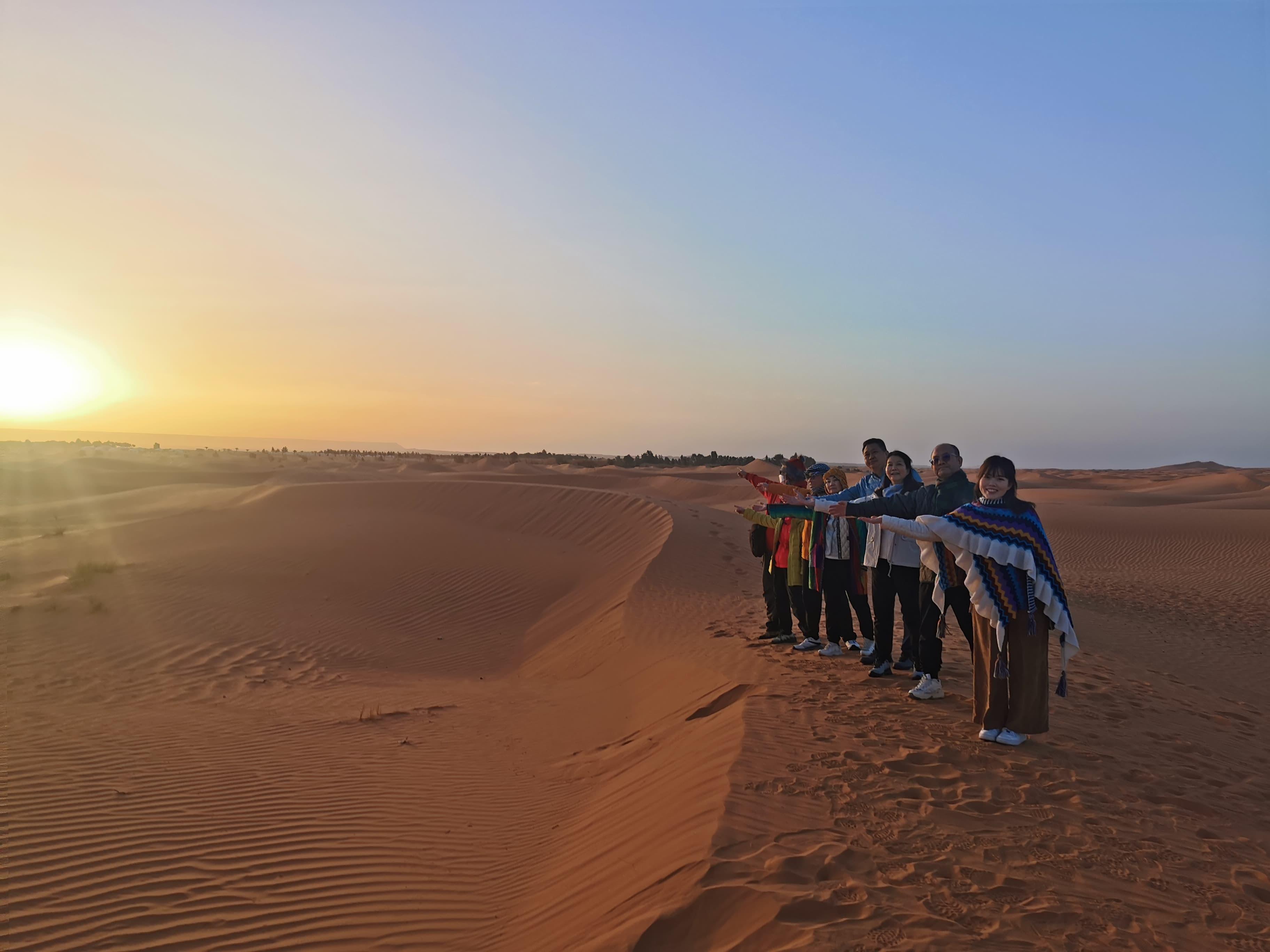 撒哈拉沙漠日出之旅:騎駱駝漫遊於沙漠,觀賞沙漠日出美景。(客人也可選擇漫步沙漠)欣賞令人屏息的沙漠日出,是最動人難忘的自然美景之一。
