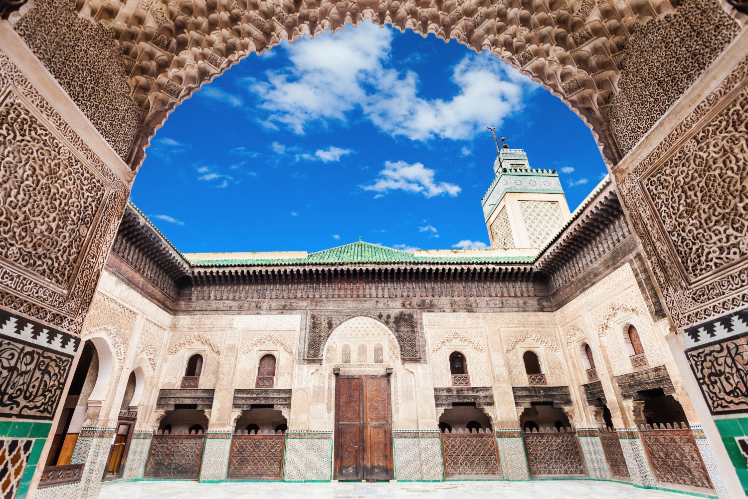 古蘭經聖學院:建於14世紀,學院內佈滿造精細的雕刻、大理石及陶瓷鑲片,被譽為菲斯最美的神學院。