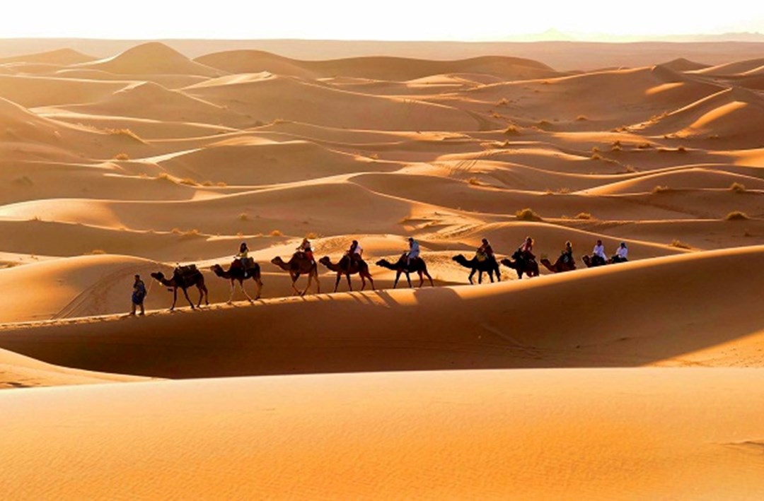 黃沙萬里的撒哈拉沙漠是世界最大的沙漠,總面積超過940萬平方公里。乘四驅車和騎駱駝是其中兩個遊撒哈拉沙漠的必做活動,分別以兩種截然不同的方式欣賞撒哈拉沙漠。登上四驅車在沙海中馳騁,捲起陣陣黃沙,狂野刺激;騎駱駝觀賞日落,當金黃的陽光映照浩瀚無盡的沙漠,壯麗美景盡收眼底,也是獨一無二的撒哈拉風情。