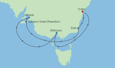 | 15 Apr (Wed) | 袋鼠島 (彭尼肖), 澳洲 Kangaroo Island (Penneshaw), Australia * | 08:00 | 18:00 |