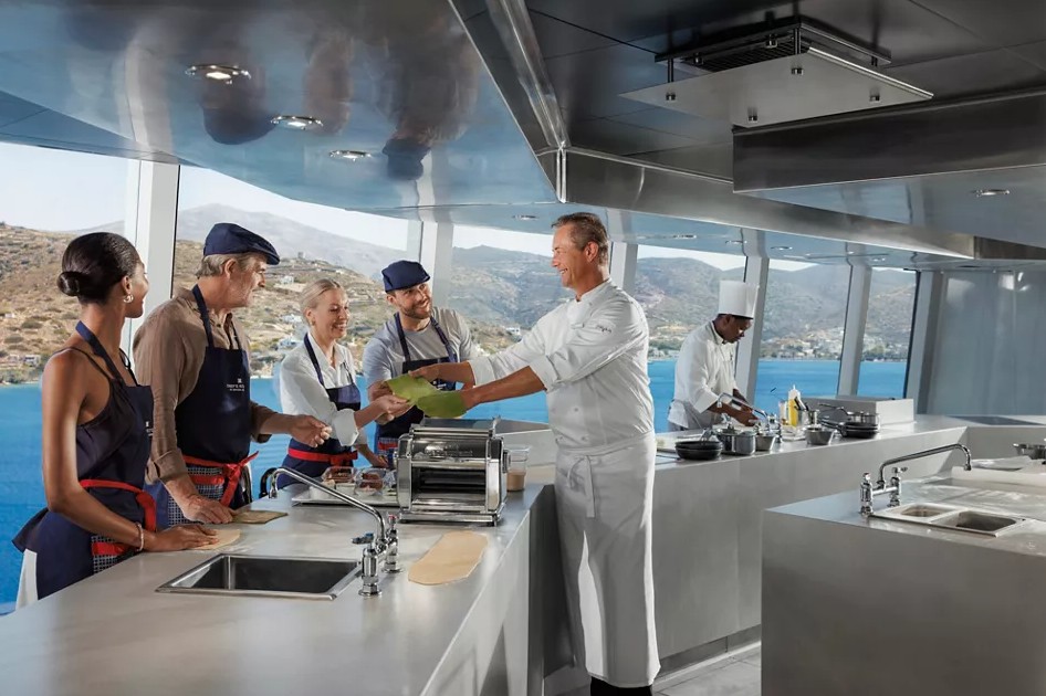專為美食愛好者打造的沉浸式烹飪空間,Chef's Kitchen 由名廚親自帶領小班課程,嚴格限 12 位賓客參與,結合示範、品嚐與實作,呈現尊貴而私密的學習體驗。課程靈感取材自航程目的地,採用新鮮講究的食材,並配以專業廚具與優雅氛圍,讓每位賓客盡情投入於高級美食之藝