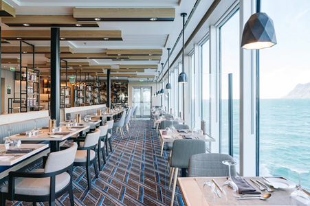 高端特色餐廳,提供野味與海鮮佳餚,如烤帝王蟹和慢燉馴鹿肉。精緻烹調手法,打造層次豐富的極地美食體驗,適合慶祝享受