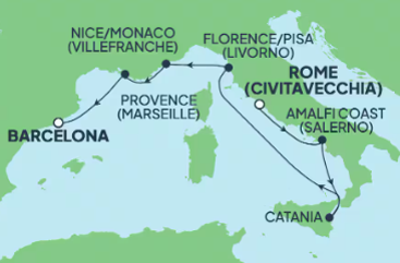| Day 7 | 馬賽 (普羅旺斯), 法國 Marseille (Provence), France | 07:00 | 17:00 |