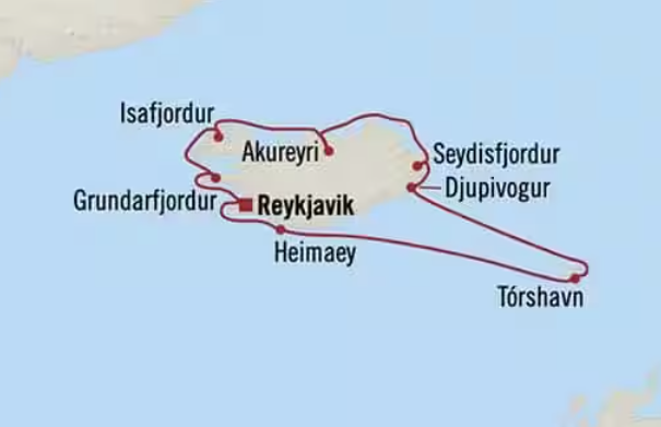 | 19 Jul | Sun | 都皮沃古爾, 冰島 Djupivogur, Iceland * | 07:00 | 16:00 |