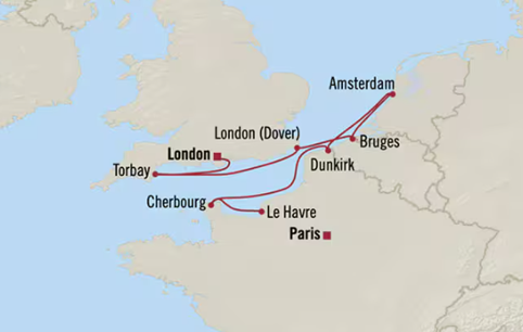 | 25 May (Mon) | 瑟堡, 法國 Cherbourg, France | 7:00 | 17:00 |