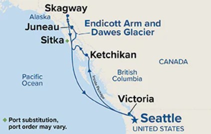 | Day 4 | 恩迪科特灣與道斯冰川, 阿拉斯加 (風景區巡航) Endicott Arm & Dawes Glacier, Alaska |