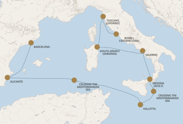 | 04 Aug | Wed | 薩勒諾, 意大利 Salerno, Italy | 09:00 | 18:00 |