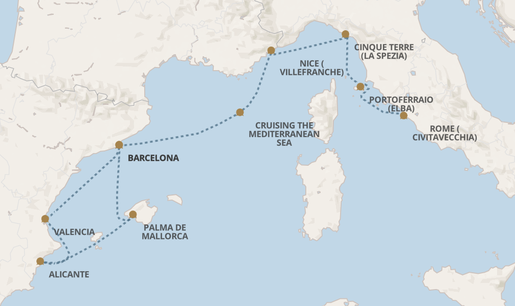 | 25 Apr | Sat | 巴塞隆拿 (塔拉戈納), 西班牙 Barcelona (Tarragona), Spain |
