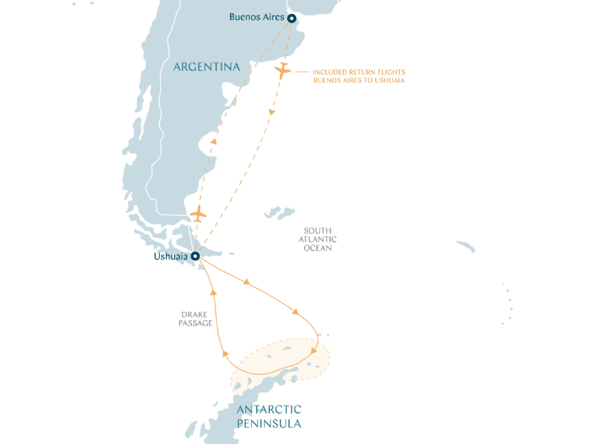 南極半島 Antarctica Peninsula 在迷人的冰川、雄偉的冰山和雪白的島嶼之中,南極半島是大多數前往白色大陸的遊客實現南極夢的地方。這是最容易到達的部分,擁有科學研究基地和令人難以置信的美景。岸上短途旅行可能包括佩特曼 島,這裡是阿德利企鵝、藍眼鷗和海雕的棲息地,還有巨大的、笨重的海象在此休息。 Among captivating glaciers, majestic icebergs and snowy islands, the Antarctic Peninsula is where most visitors to the White Continent live their Antarctica dream. It's the most accessible part, with scientific bases and incredible scenery, like the photogenic Lemaire Channel. Shore excursions might include Mikkelsen Harbour, where among gentoo penguins, snowy sheathbills and skuas, Antarctic Weddell seals haul out. (船長及船員將配合天氣環境變化而彈性地安排遊輪的每日航程及登陸南極大陸。)