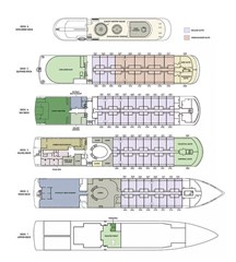 全新升級的長江探索號 Yangzi Explorer 擁有全球領先的 1:50 乘客空間比例,設有 58 間豪華套房、12 間大使套房與 4 間尊貴特色套房,每間皆配備私人觀景露台,提供極致舒適與私密的航程體驗。