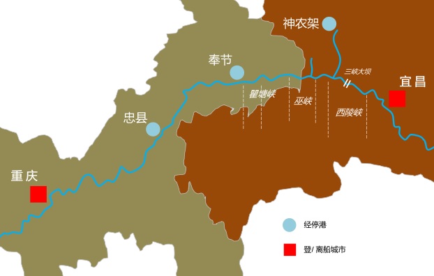 | Day 1 | 宜昌, 中國 – 船公司安排接送前往碼頭登船. 晚上將舉行船長歡迎酒會 及 通過三峽大壩升船機 (檢修及禁航期間除外) 於下午14:00前抵達宜昌將獲贈自選行程二選一: A線-三峽大壩 VIP行程 / B線-屈原祠 & 三峽移民博物館 |