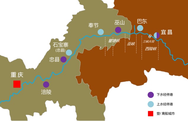 | Day 1 | 重慶, 中國 – 船公司安排接送前往碼頭登船 |