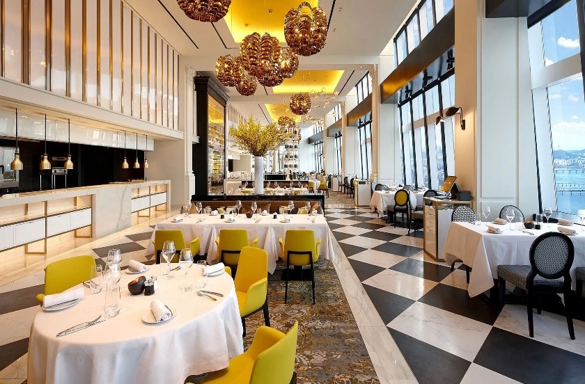 餐廳內部設計現代而時尚,擁有大面積的落地窗,可以俯瞰到龍湖灣郵輪碼頭和廣安大橋的美景。整體空間開放且舒適,營造出輕鬆愉悅的用餐氛圍。自2019年開業以來,迅速受到廣泛讚譽。