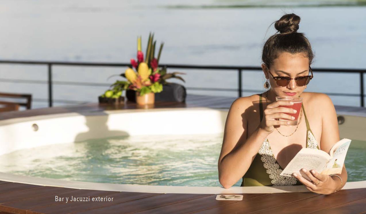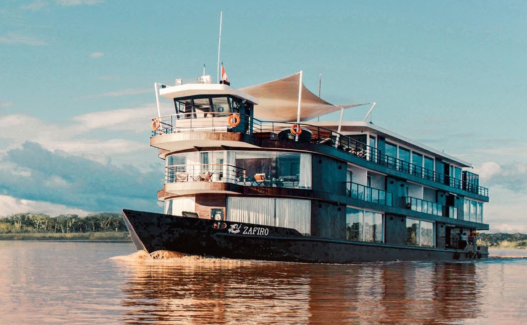 The Zafiro Experience豪華河船:在起航前,調酒師將為您奉上一杯用當地水果和秘魯最受歡迎的皮斯可酒調製的雞尾酒。您可以一邊品嚐美酒,一邊在觀景台欣賞 360 度全景。開始航行後,船上專業導遊將概述接下來4天3夜行程的活動、路線、野生動物和植被的資訊、地理和歷史背景以及其他有用的資訊,晚上於船上享用歡迎晚宴。