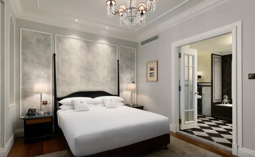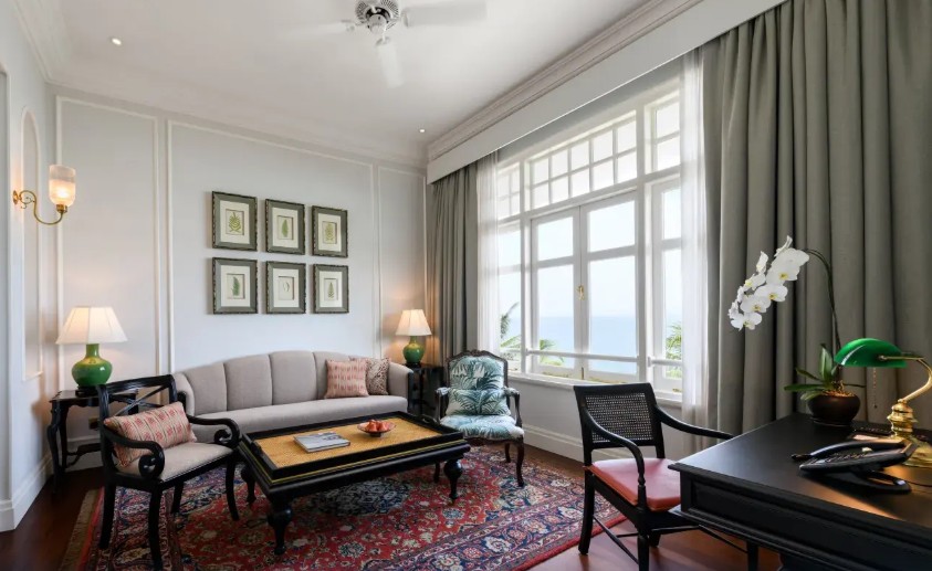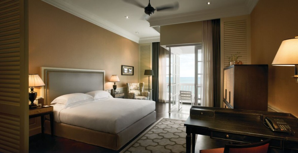 位於檳城喬治市的核心地帶,面向安達曼海灣,融合英國維多利亞時代的古典建築風格與南洋殖民風情,創立於1885年,至今已有超過138年的歷史。由亞美尼亞裔的薩奇斯兄弟創立,曾歷經兩次世界大戰和馬來西亞獨立等重大歷史事件,是檳城最具代表性的古董酒店之一。建築分為兩翼,遺產翼(Heritage Wing)保留了經過2019年修復的古典風華,擁有約100間套房,裝潢典雅且充滿懷舊氣息;勝利翼(Victory Annexe Wing)於2013年開業,設計較為現代時尚,所有套房均面向大海,並配備浴缸與雙盥洗台。