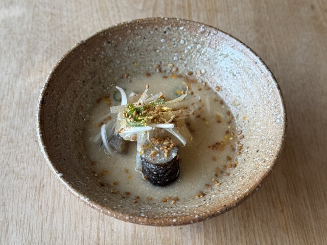店主山本真樹出身大阪,在當地打下和食的基礎,年輕時便接手店鋪。之後的修業足跡橫跨國內外:不僅曾在香港總領事館工作,還參與了威尼斯洞爺酒店與沖繩酒店的開業。正因為歷練過不同風土,他能自然地將北海道食材與關西技法融合,不刻意強調和食的框架,而是根據食材當下的狀態靈活調整。這份務實與從容,正是「溫味」最核心的態度。這裡結合了道產食材與關西的烹飪技術,根據當季的新鮮食材來製作料理。