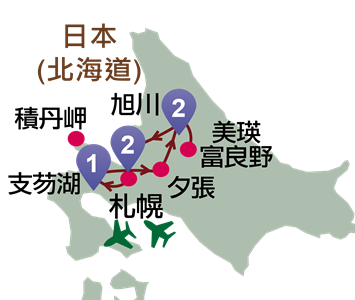 支芴湖、夕張、旭川、美瑛町、富良野、札幌、積丹岬