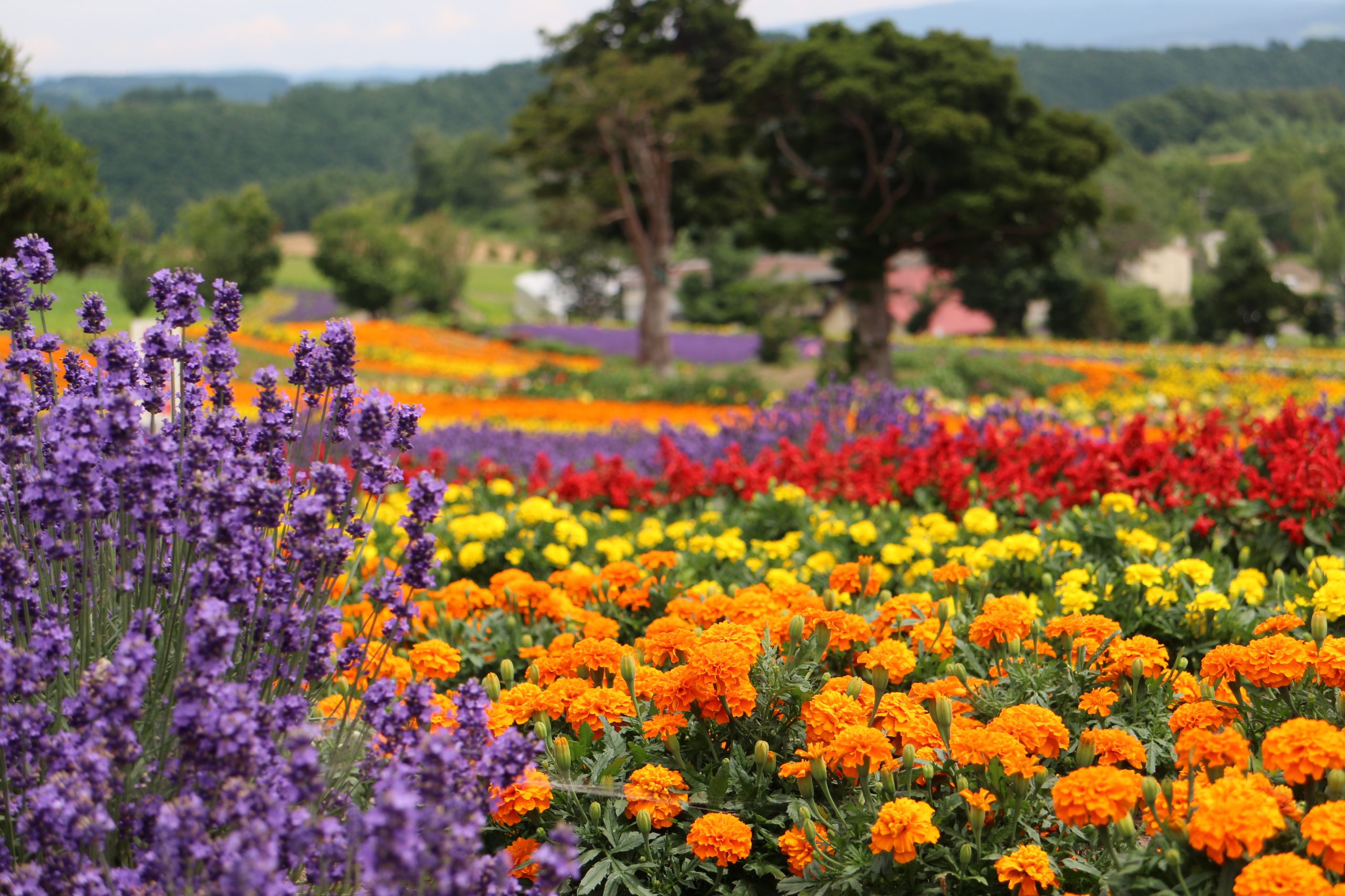 亞斗夢之丘︰廣大的圓形花園,色彩繽紛的花朵連綿至十勝岳連峰的景觀讓人難忘。代表性的花田包括薰衣草、向日葵、法國金盞花及大波斯菊等。