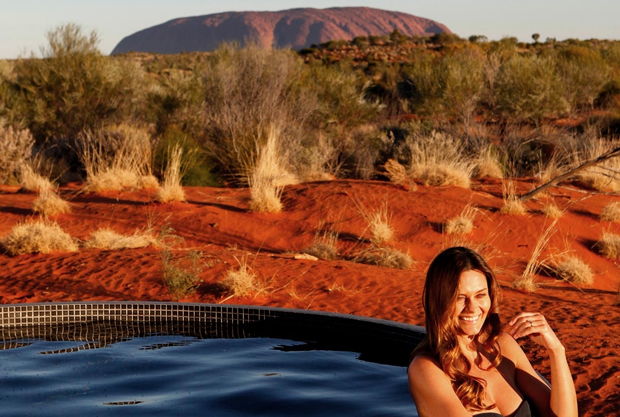 黃昏時分,在尊屬的烏魯魯日落體驗中,捕捉太陽沉入地平線時,反射在烏魯魯多面岩壁上的萬變光彩。靜待夕陽緩緩落下。在獨特沙丘上舉行歡迎儀式,品嚐冰涼飲品或葡萄美酒與精緻小點,欣賞夕陽染紅天際,艾雅斯岩在晚霞映照下展現絕美風采。