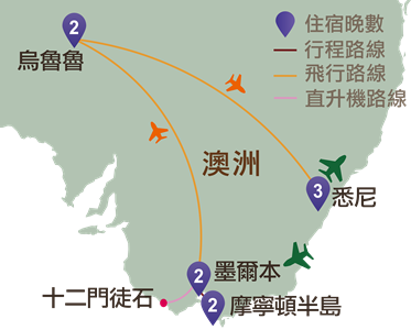 早餐後,於墨爾本乘直升機高空觀賞十二門徒石壯麗景觀。