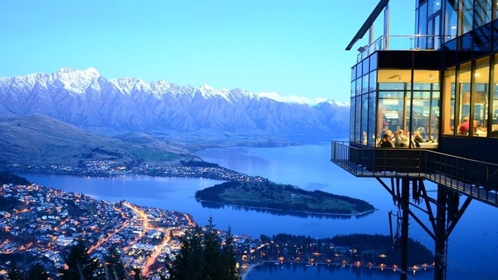 乘搭天際纜車前往600米高的博士峰山頂,沿途鳥瞰皇后鎮如畫風光,瓦卡蒂普湖美態盡入眼簾,並於著名觀景餐廳享用自助晚餐。