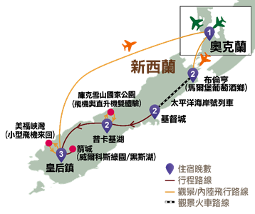 早餐後,專車前往機場,乘坐內陸航班前往奧克蘭。航機抵達後,專車返回酒店。