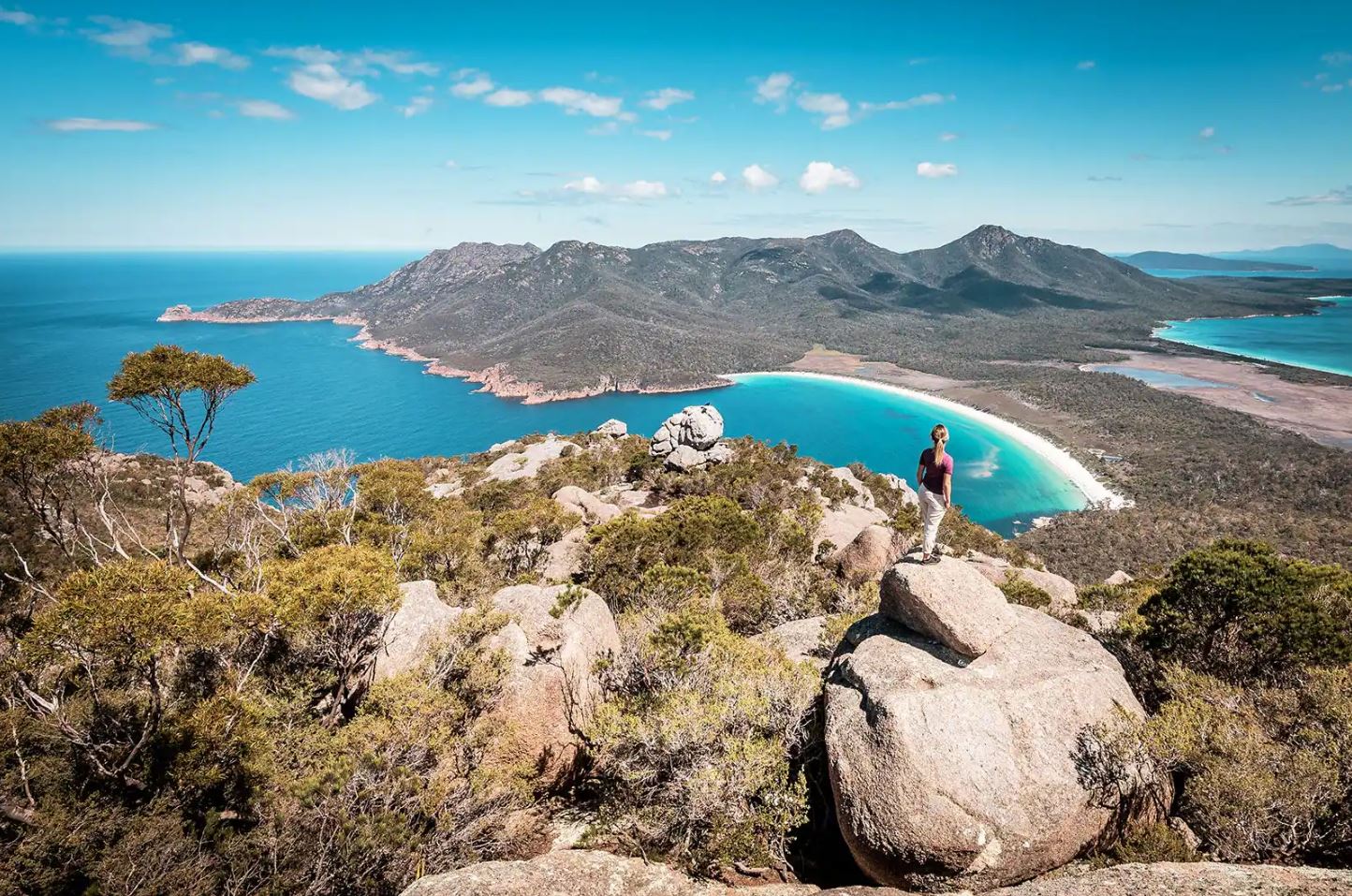 酒杯灣以其獨特的半月形海灣和純淨的白沙灘而聞名,被譽為世界上最美麗的海灘之一,是攝影愛好者的天堂。從觀景台俯瞰,海灣呈現出完美的酒杯形狀,藍綠色的海水與白色沙灘形成鮮明對比。