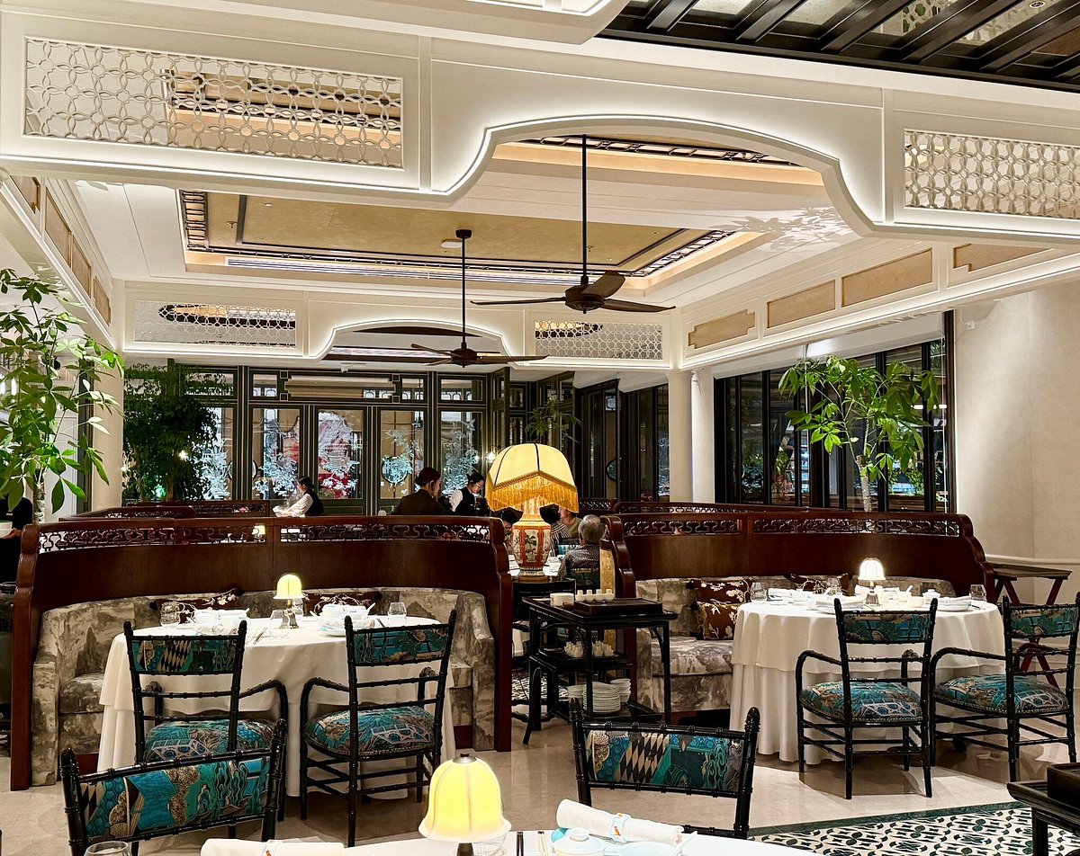 餐廳的設計旨在創造一個寧靜安詳的環境,牆上裝飾著精美的泰國藝術品,反映了泰國豐富的文化。