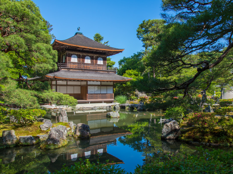 銀閣寺: 建於15世紀末,是位於京都東山山腳下的一座禪宗寺廟,由室町幕府第8代將軍足利義政效仿其祖父建造的金閣寺而建。