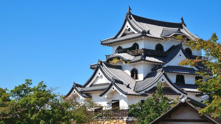 彥根城: 建於17世紀初期,是德川幕府的重要城堡之一。位於金龜山上,具有優越的防禦地理位置。其天守閣為三層樓高,建築風格包括切妻破風和唐破風等設計元素。
