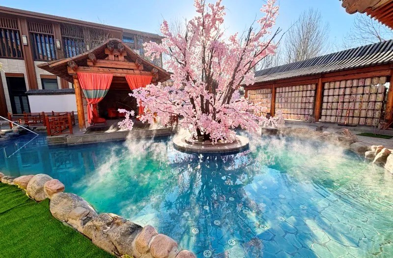 以自然生態為底色的溫泉休憩地,溫潤的湯泉與園林景致讓人舒緩和身心放鬆。融合養生療愈與園藝美學的特色溫泉區。貴賓可經過酒店通道抵達湯泉區,感受冬日室內外湯泉。