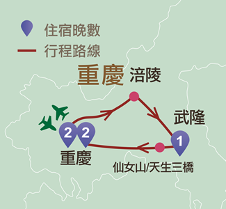 是日集合於香港國際機場,由尊賞假期專業領隊陪同下,乘坐國泰航空或中國國際航空客機飛往重慶市。