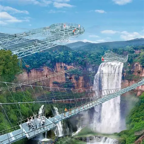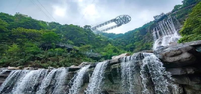又名玻璃大峽谷,是世界首個集懸空玻璃平臺、玻璃懸廊、玻璃棧道、玻璃吊橋、玻璃天鏡、玻璃直播間6位一體的玻璃觀光組合。景區內瀑布、深潭、奇石、叢林、奇峰聳立、銀瀑飛濺,灘多水急,原始雨林遮天蔽日,一年四季清爽宜人。