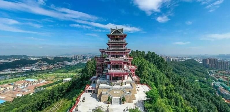 位於佛山市里水,公園依山而建,山高142米,公園內保留了多個原生態景點,景色怡人。山頂建有展旗樓,以鮮明的古唐風格建築,樓高188米,共七層,為當地的地標。登樓可俯瞰里水景色,還可遠眺南海的秀美風光。