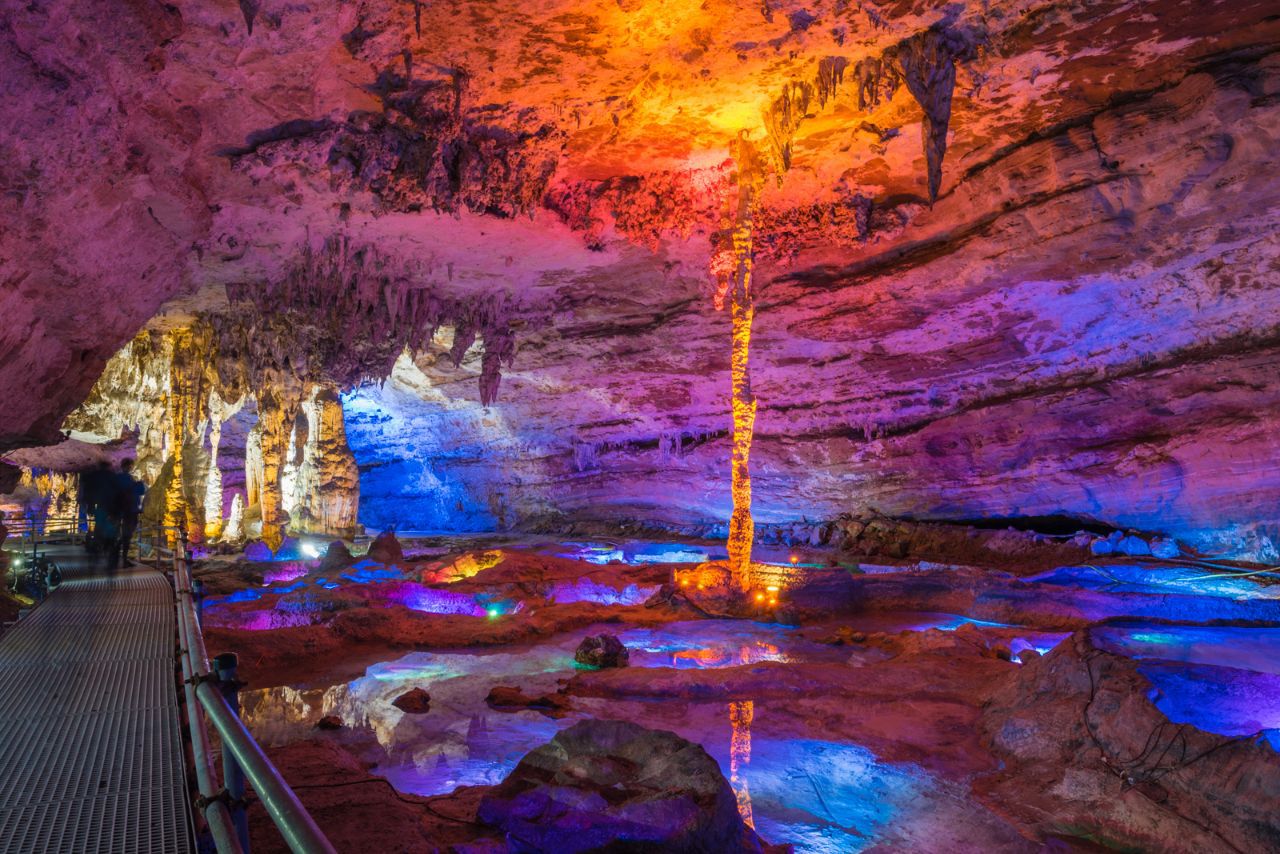 十二背後雙河谷景區: 雙河谷由地下河谷、天坑、石膏洞組成,擁有豐富的地下岩溶地貌。洞內乘坐電瓶車在歷經4億年形成的雙河石膏洞中穿行,完成一次時光穿梭之旅。