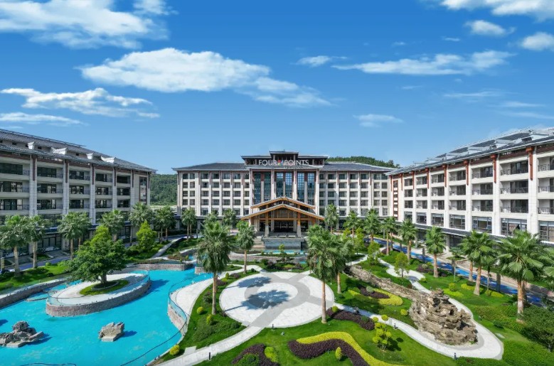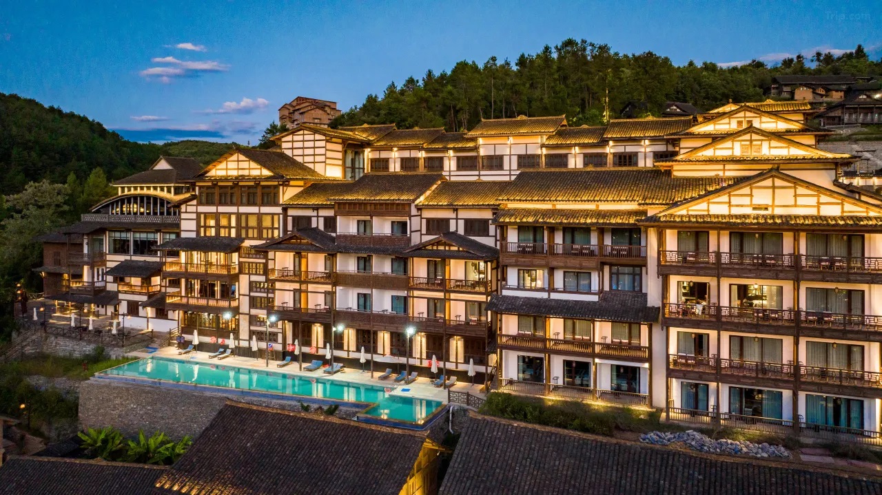 織金飯店背靠穿洞流雲主峰,面向三潭滾月景區,俯瞰平遠古鎮。由“金蝶展翅”建築群主接待區,極大規模、極具特色的一家準高星度假酒店。織金飯店獨具魅力網紅打卡點,中空3層,地域文化色彩,體現“中國風”之中的純正“織金味”。