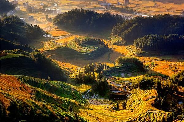 梯田由秦漢時期已初步成型,至今已有2000多年歷史。八萬餘畝的梯田美景,從海拔500米延伸至1200米,層層迭迭,氣勢恢宏。四季的景色各有風貌,春季水滿田疇如鏡如畫,夏季佳禾吐綠青翠欲滴,秋季金黃色稻浪起伏遍佈山坡,冬季漫山瑞雪銀裝素裹。