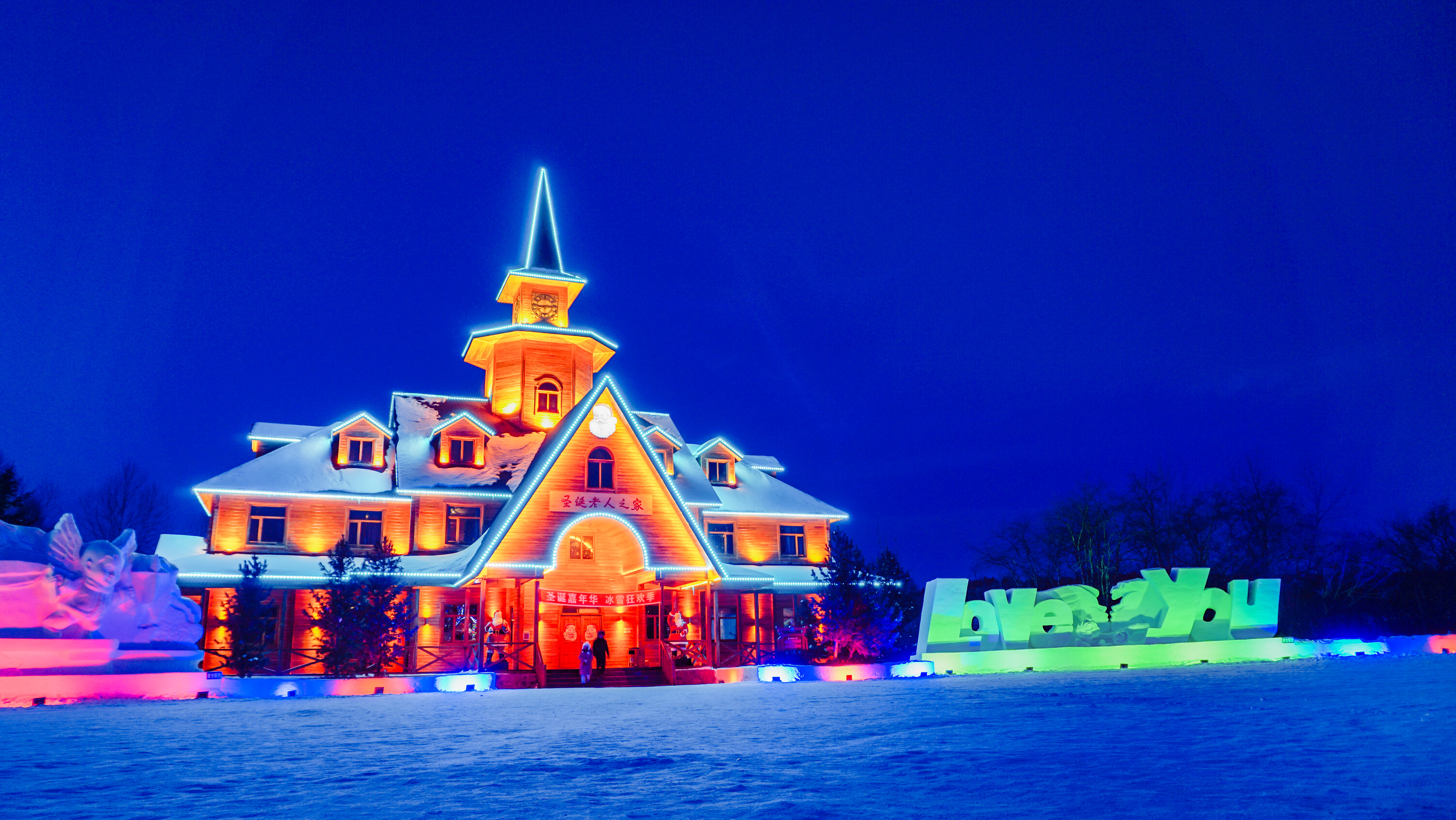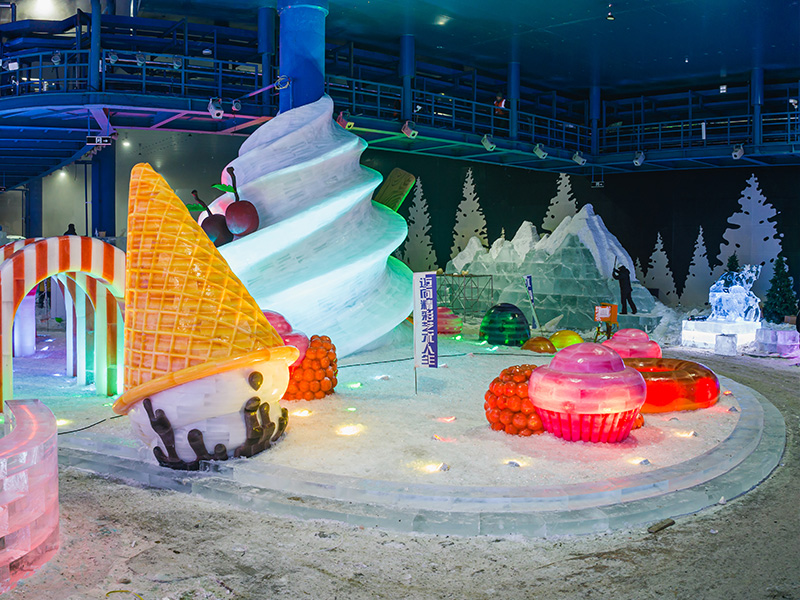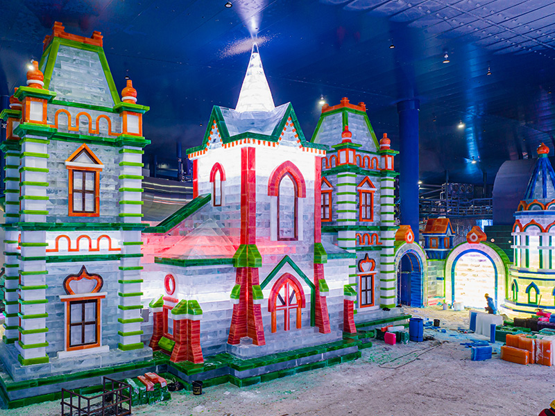 每年都有新主題。園區內有各樣冰上項目,晚上五顏六色的燈開放時,如置身冰燈里的童話世界。