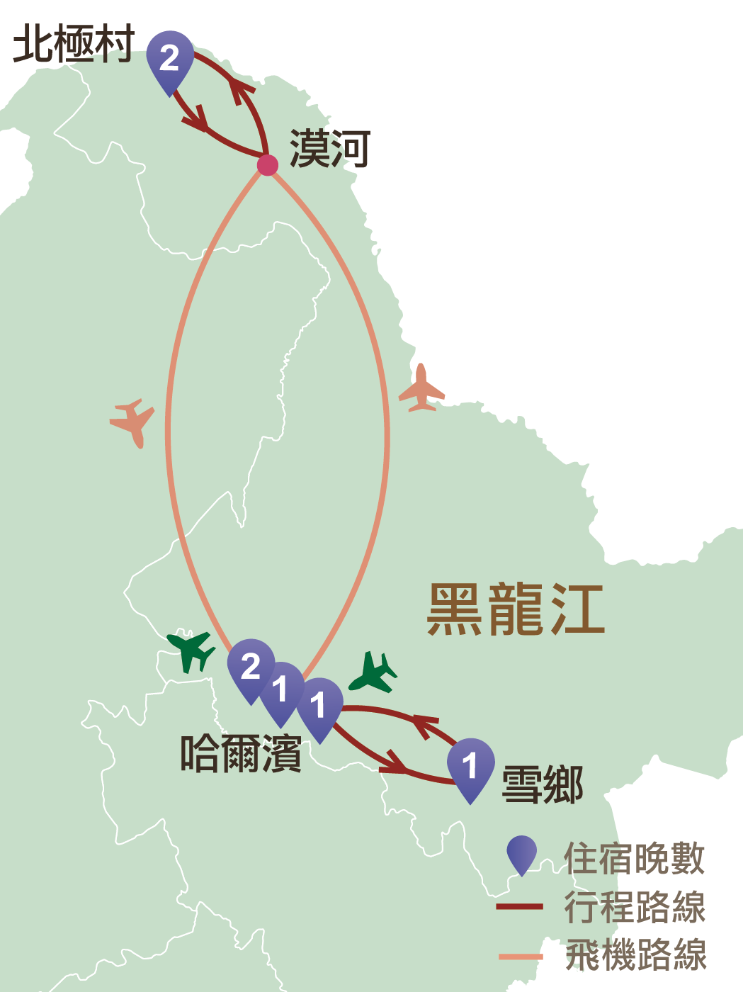 哈爾濱、中國雪鄉雙峰林場、漠河、北極村、聖誕村