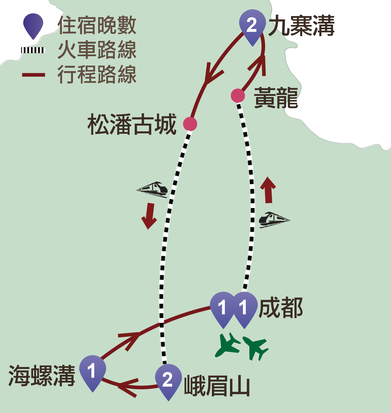 註:如遇黃龍景區冬季封山保育,則改為前往牟尼溝景區。