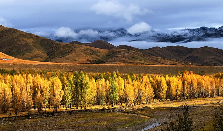 萬畝青楊林: 擁有世界上海拔最高、面積最大的人工青楊林。每到秋季一遍金黃,在藍天白雲下,格外美麗。