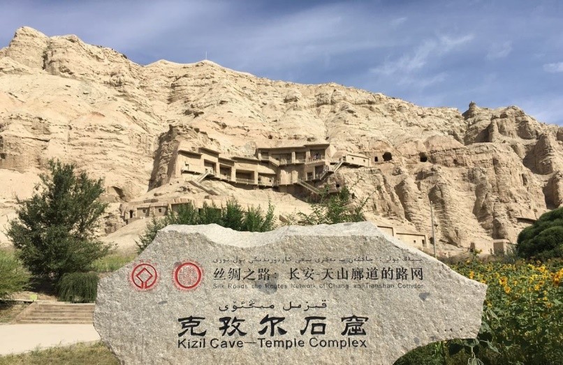 克孜爾千佛洞: 是龜茲石窟藝術的發祥地之一,其建築、雕塑和壁畫藝術,在中亞佛教藝術中佔極其重要的地位。
